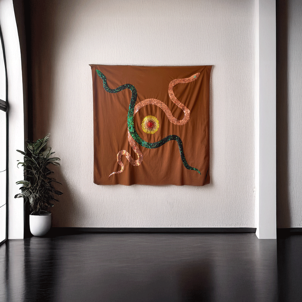 Tecido, lantejoula e paetês. Bordado artesanal. 140 x 140 cm